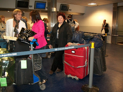 pasamos por la aduana...migraciones... ...y a esperar el avión...al ingresar pasamos por el sector de primera clase...butacas enormes...reclinables...pero seguimos para atrás al otro sector......y ....lo que se podia apreciar era el tren sarmiento a las ocho de la mañana...